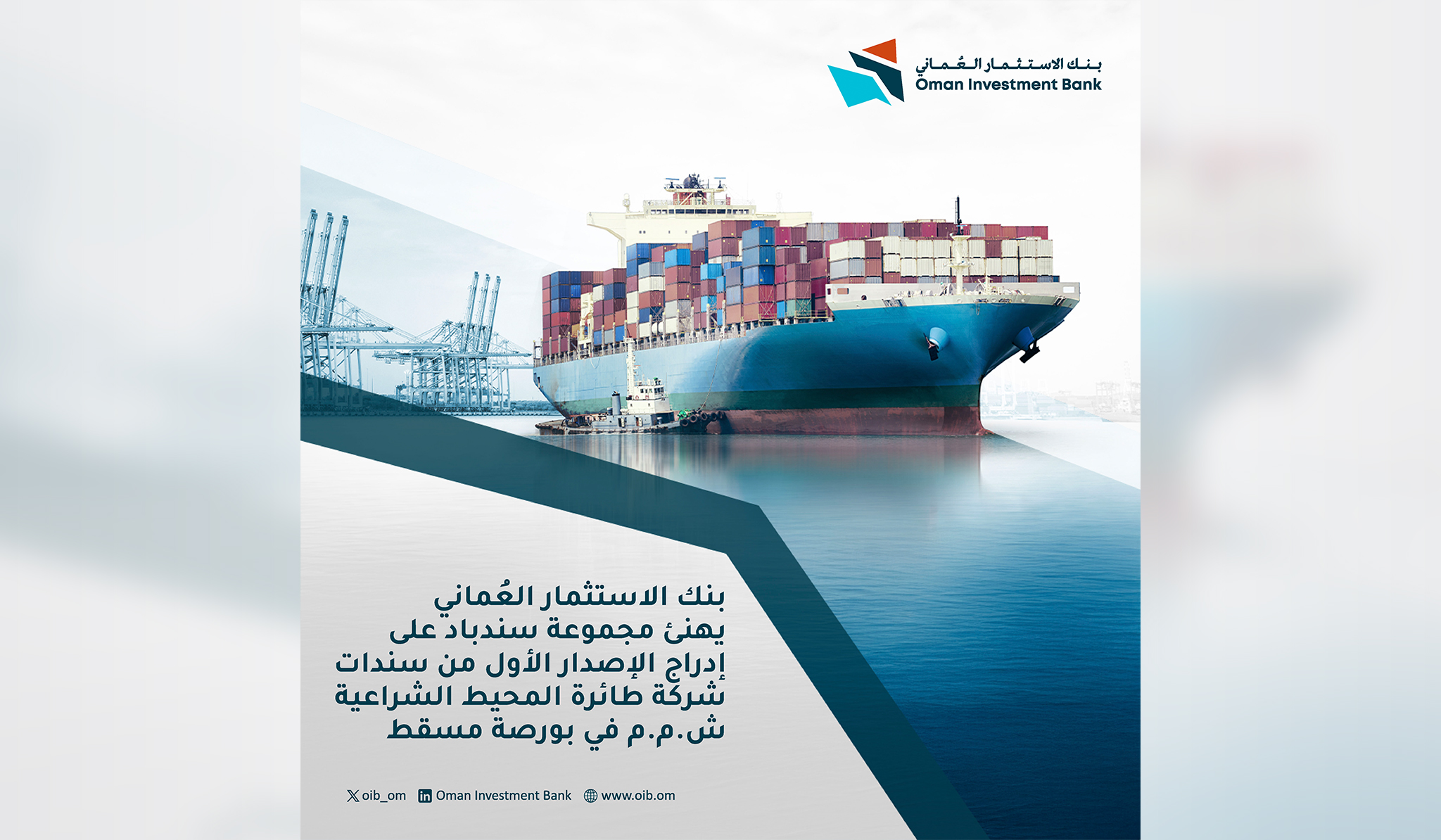 بنك الاستثمار العُماني يكمل بنجاح إصدار سندات بقيمة 190 مليون دولار أمريكي لشركة سندباد عبر البحار ش.م.م.